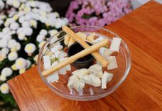 260 г • Сыр пармезан, сыр дор-блю, сыр козий, сыр бри, мёд, маринованные оливки, гриссини